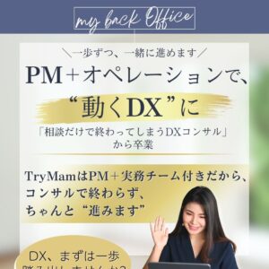 TryMamは、中小企業の人材不足を「仕組み」「チーム」「デジタル」の力で解決するオンラインスタッフサービスです。